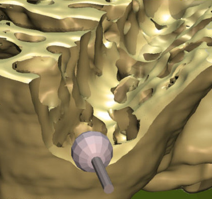 VOXEL-MAN a reçu le brevet américain n° 8 396 698 pour ses méthodes de rendu haptique. Associées à des dispositifs haptiques standard, elles fournissent un retour de force très réaliste pour la simulation d’interventions de perçage et de fraisage. De nombreux paramètres physiques tels que le type de foret, la vitesse de rotation, l’angle, la pression et les propriétés des tissus sont pris en compte.